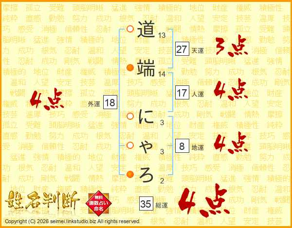 道端にゃろさんの総運は35画の4点!