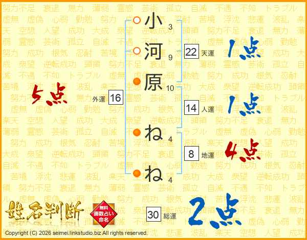 小河原ねねさんの総運は30画の2点!