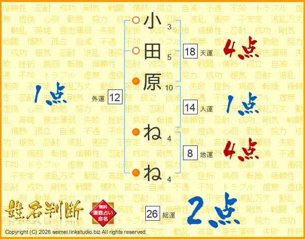 小田原ねねさんの総運は26画の2点!
