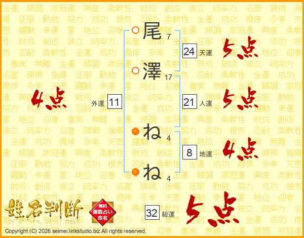 尾(7画)澤(17画) ね(4画)ね(4画)
