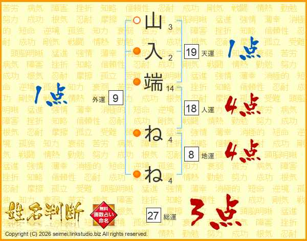 山入端ねねさんの総運は27画の3点!