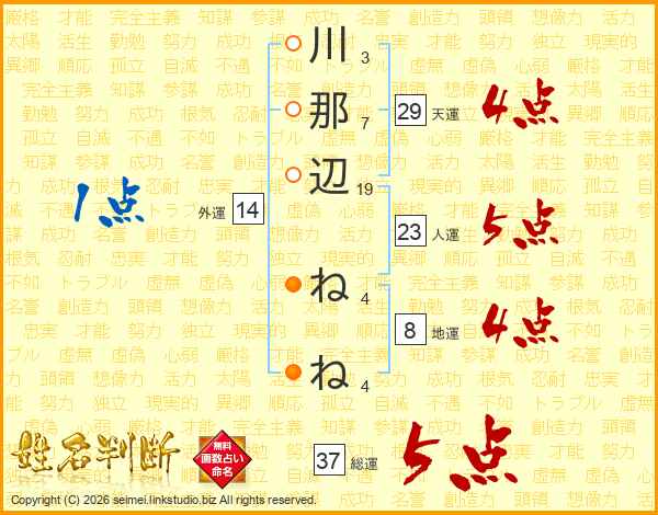 川那辺ねねさんの総運は37画の5点!