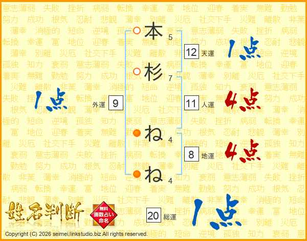 本杉ねねさんの総運は20画の1点!