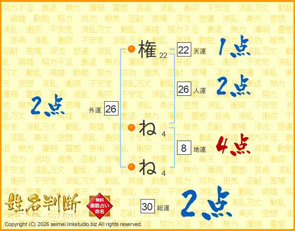 権ねねさんの人運は26画の2点!