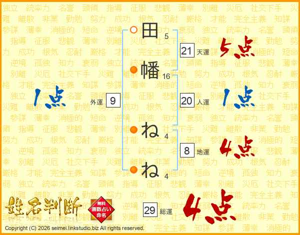 田幡ねねさんの総運は29画の4点!