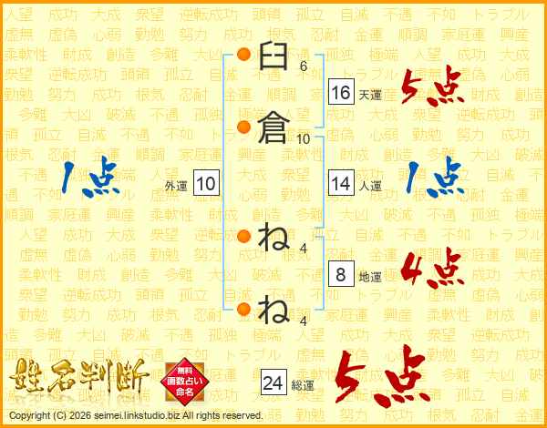 臼倉ねねさんの総運は24画の5点!