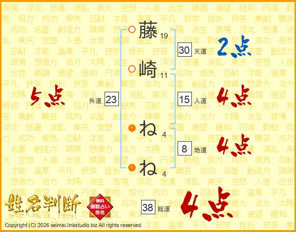 藤崎ねねさんの総運は38画の4点!