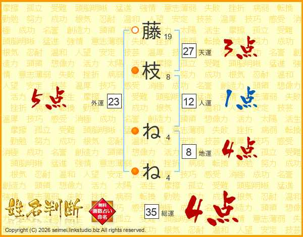 藤(19画)枝(8画) ね(4画)ね(4画)