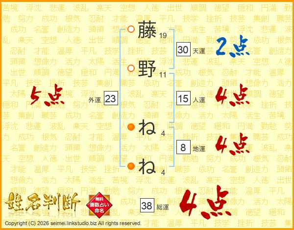 藤野ねねさんの総運は38画の4点!