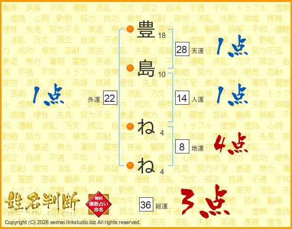 豊(18画)島(10画) ね(4画)ね(4画)