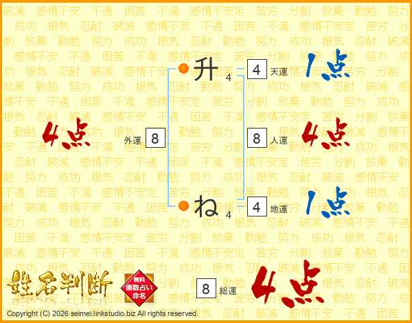 升ねさんの総運は8画の4点!