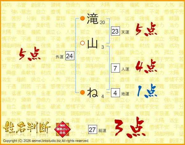 滝山ねさんの総運は27画の3点!