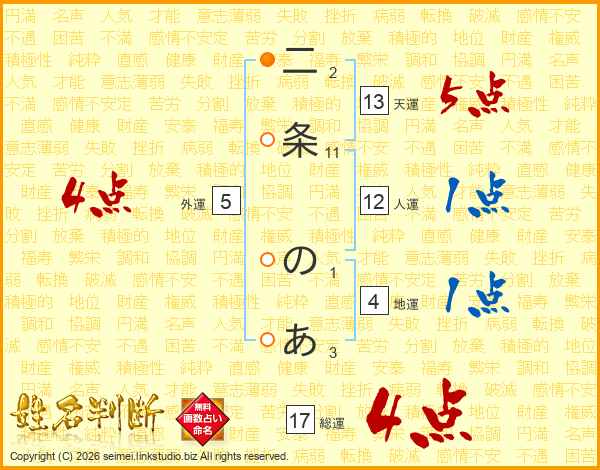 二条のあさんの総運は17画の4点!