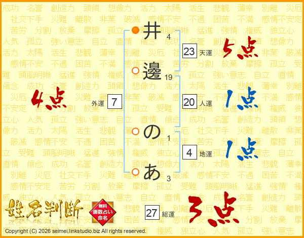 井邊のあさんの総運は27画の3点!