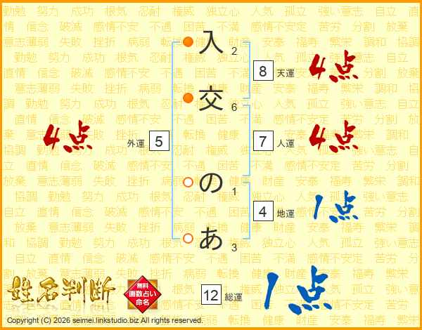 入交のあさんの総運は12画の1点!