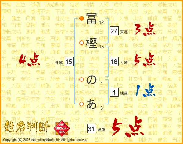 冨樫のあさんの総運は31画の5点!