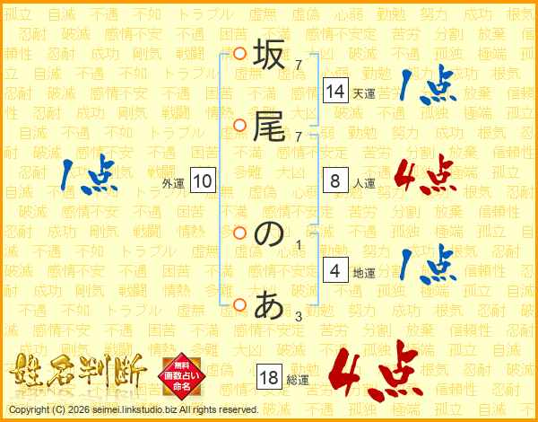 坂尾のあさんの総運は18画の4点!