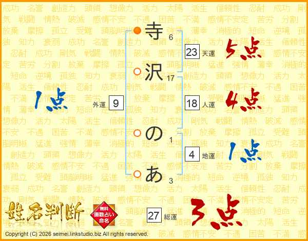 寺沢のあさんの総運は27画の3点!