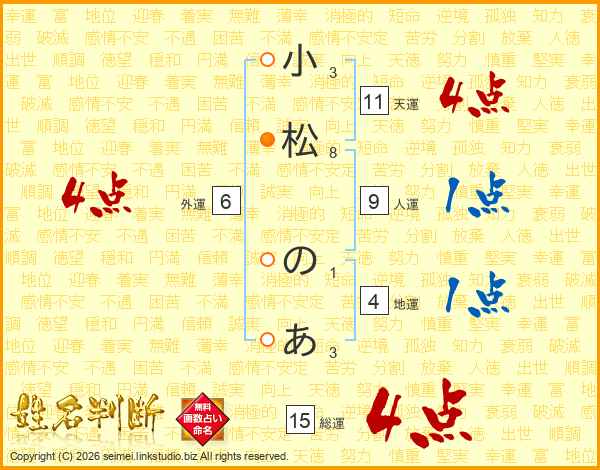 小松のあさんの天運は11画の4点!