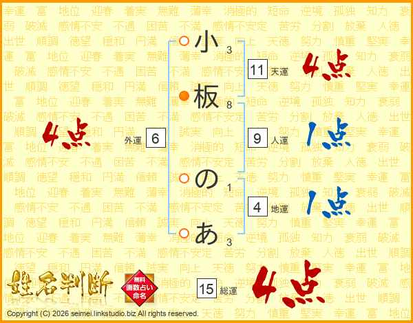 小板のあさんの天運は11画の4点!
