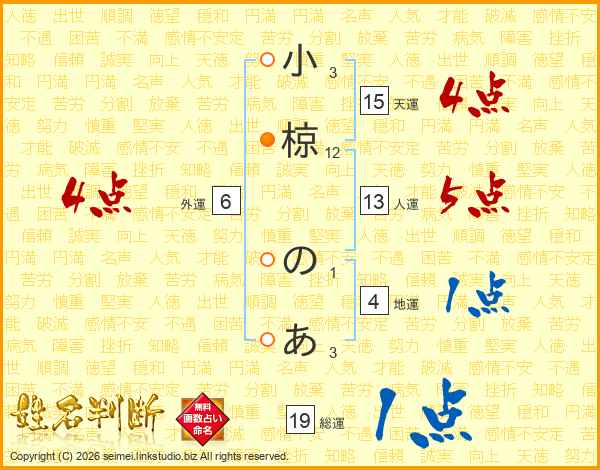 小椋のあさんの総運は19画の1点!