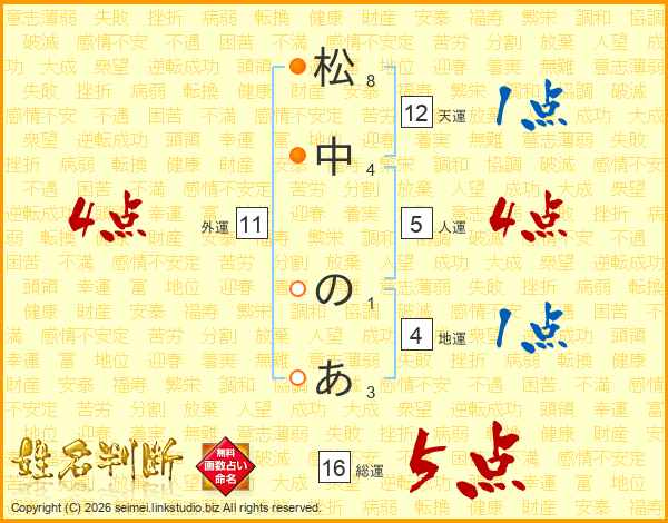 松中のあさんの総運は16画の5点!