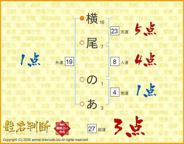 横尾のあさんの総運は27画の3点!