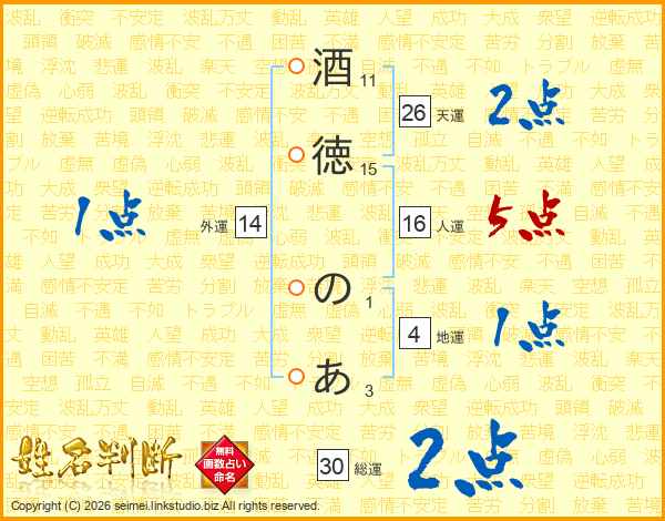 酒徳のあさんの天運は26画の2点!