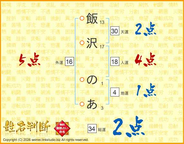 飯沢のあさんの総運は34画の2点!