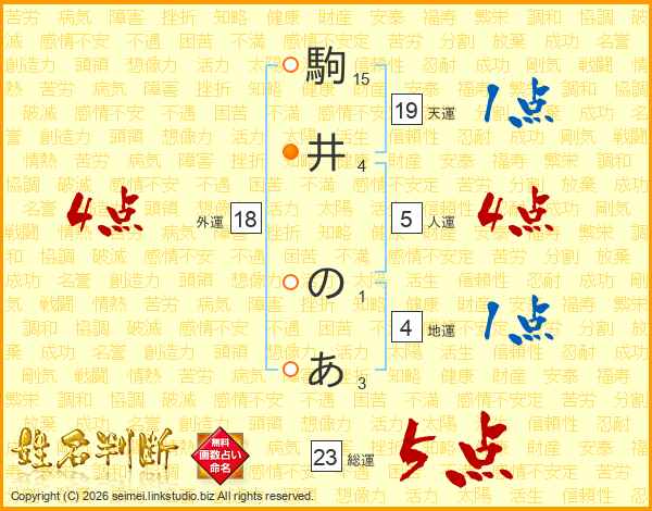 駒井のあさんの総運は23画の5点!