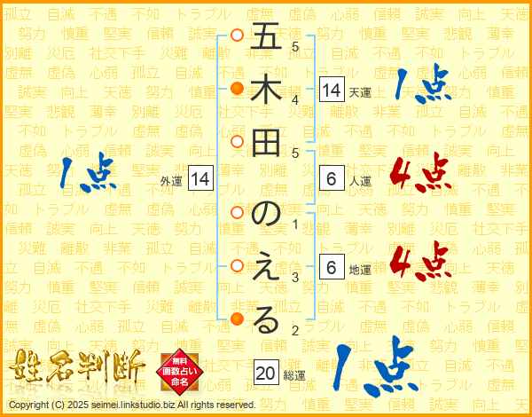 五木田のえるさんの天運は14画の1点!