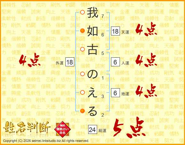 我如古のえるさんの天運は18画の4点!
