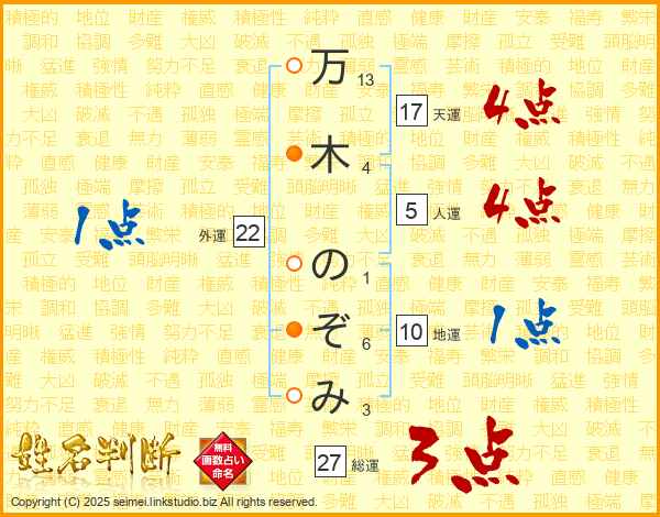 万木のぞみさんの総運は27画の3点!