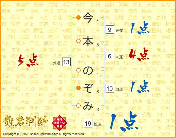 今(4画)本(5画) の(1画)ぞ(6画)み(3画)