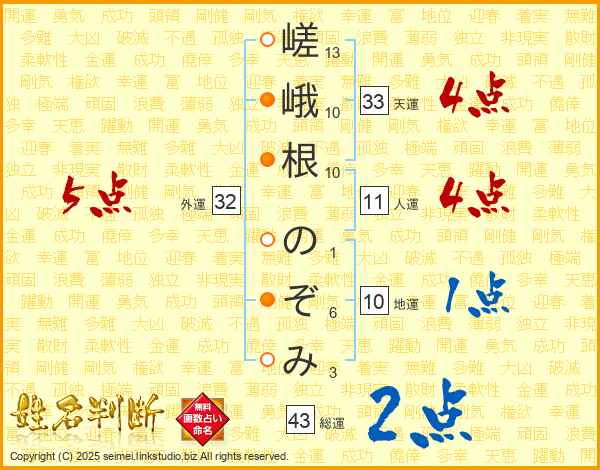 嵯峨根のぞみさんの総運は43画の2点!