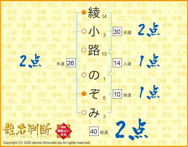 綾小路のぞみさんの総運は40画の2点!