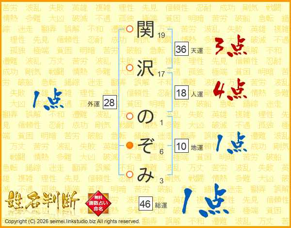 関沢のぞみさんの総運は46画の1点!