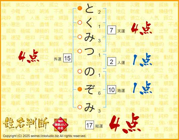 とくみつのぞみさんの総運は17画の4点!