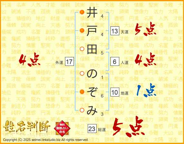 井(4画)戸(4画)田(5画) の(1画)ぞ(6画)み(3画)