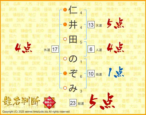 仁井田のぞみさんの天運は13画の5点!