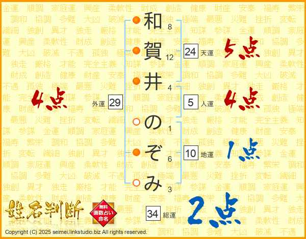 和(8画)賀(12画)井(4画) の(1画)ぞ(6画)み(3画)