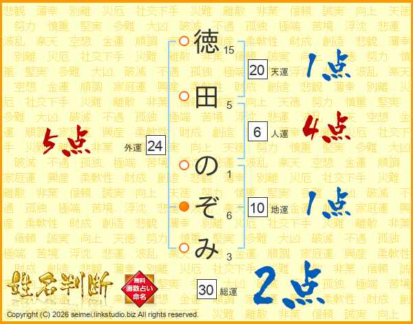 徳田のぞみさんの総運は30画の2点!