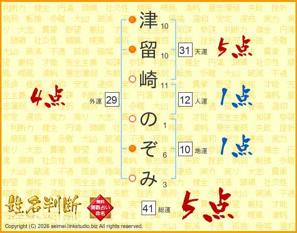 津留崎のぞみさんの総運は41画の5点!