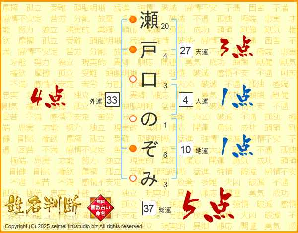 瀬戸口のぞみさんの総運は37画の5点!