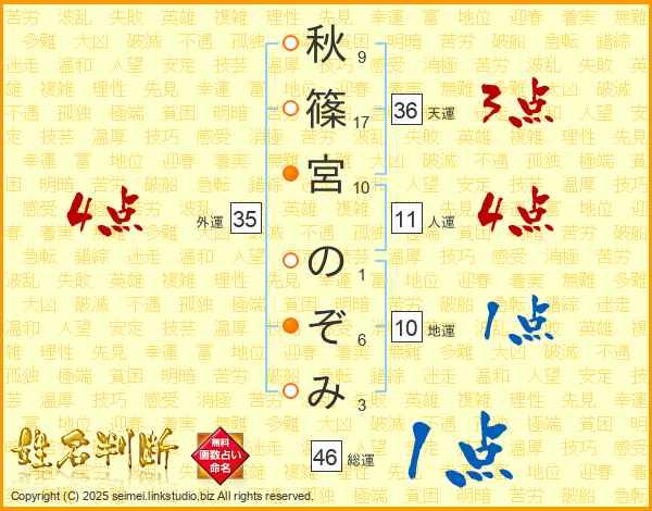 秋篠宮のぞみさんの総運は46画の1点!