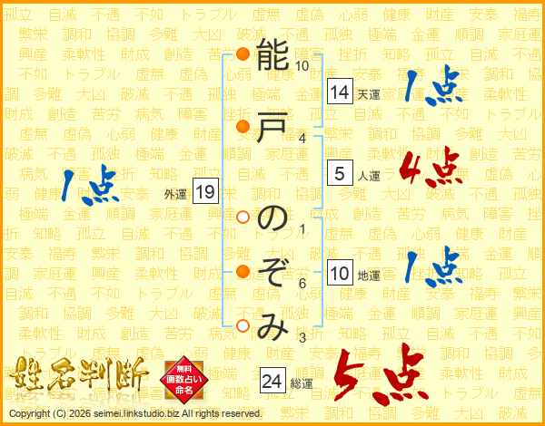 能戸のぞみさんの総運は24画の5点!