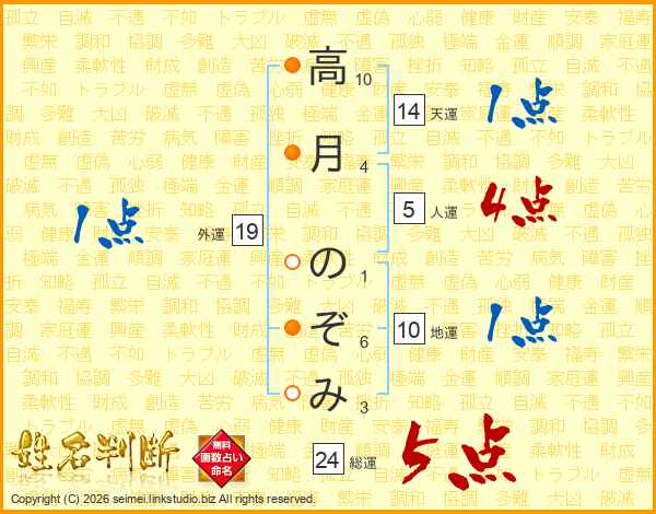 高月のぞみさんの総運は24画の5点!