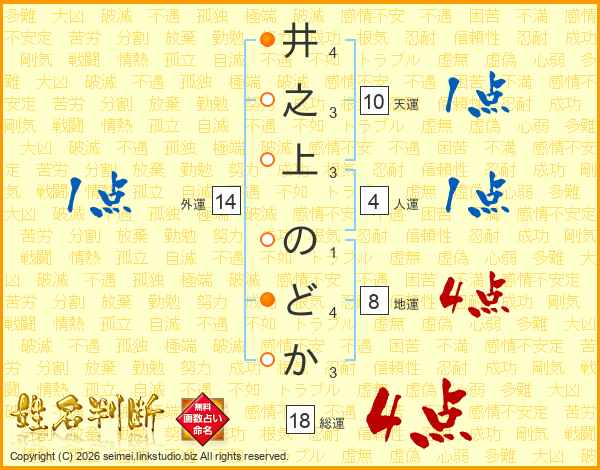 井之上のどかさんの総運は18画の4点!
