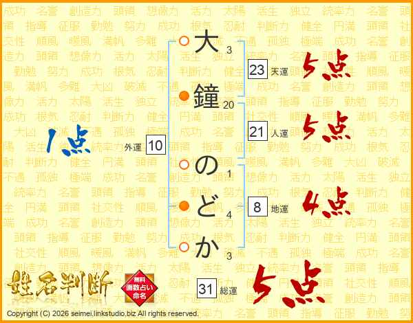 大鐘のどかさんの総運は31画の5点!