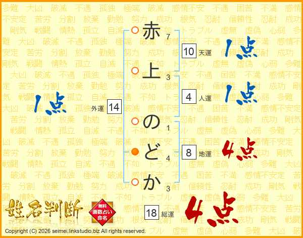 赤(7画)上(3画) の(1画)ど(4画)か(3画)